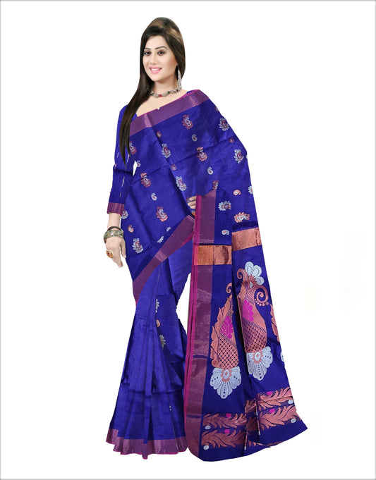 Pradip Fabrics Woven Dark blue color Soft Handloom Saree