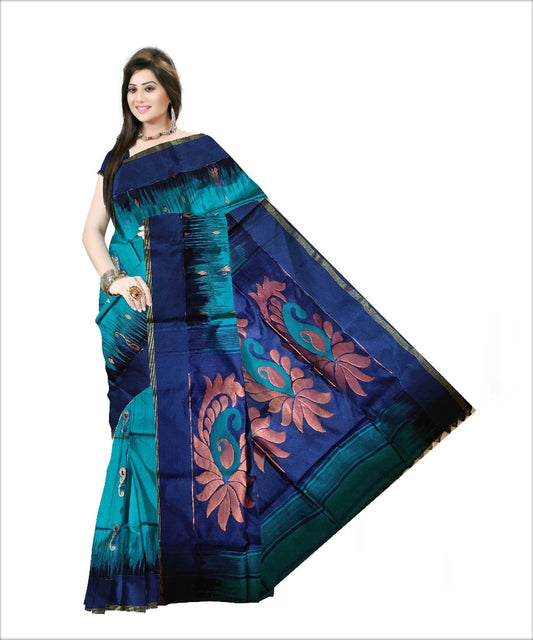 Pradip Fabrics Woven Sea green and Blue color Soft Handloom Saree