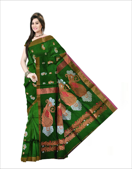 Pradip Fabrics Woven green color Soft Handloom Saree