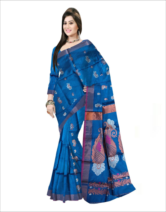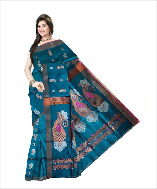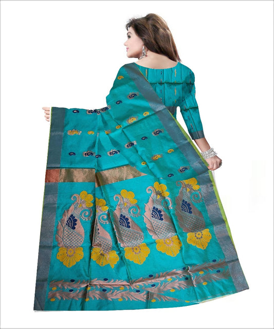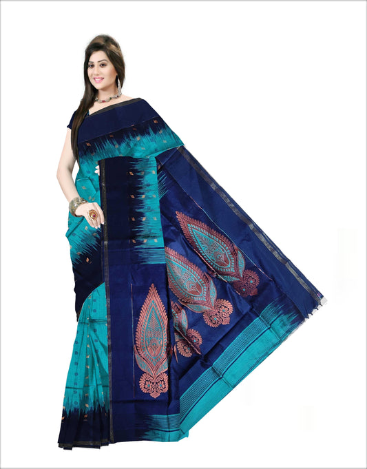 Pradip Fabrics Woven Deep sea green and Blue color Soft Handloom Saree