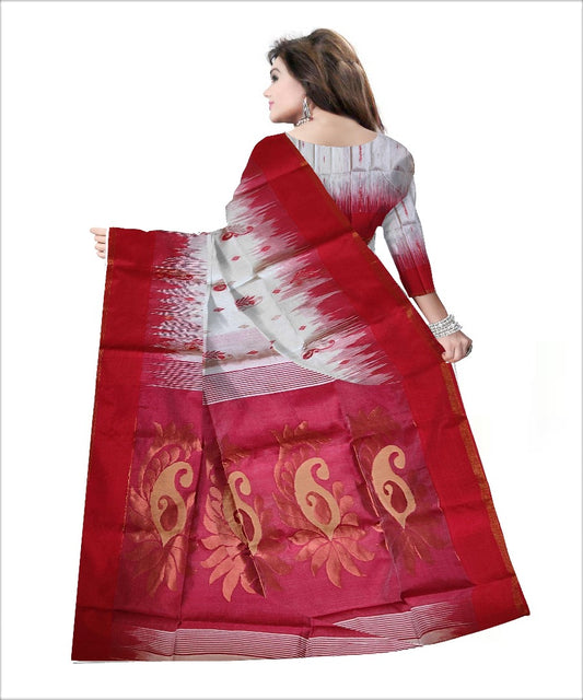 Pradip Fabrics Woven Red and white color Soft Handloom Saree