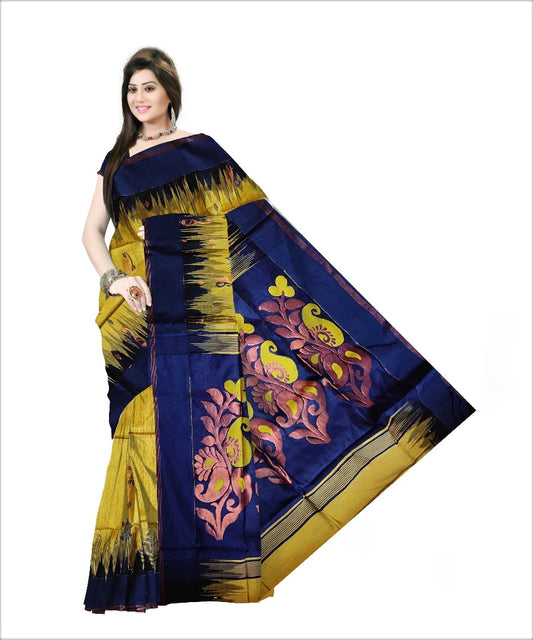 Pradip Fabrics Woven Yellow and Blue color Soft Handloom Saree