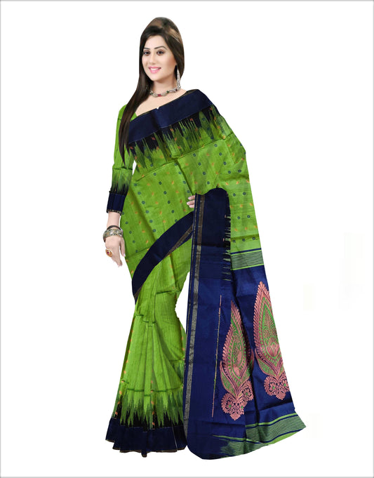 Pradip Fabrics Woven Green and Blue color Soft Handloom Saree