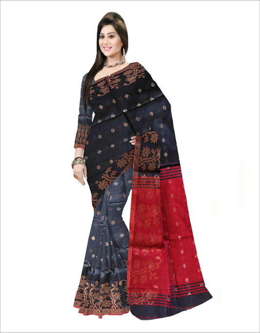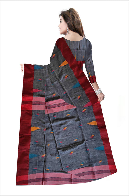 Pradip Fabrics Woven Soft Pur Cotton Handloom Grey & Red Color Saree