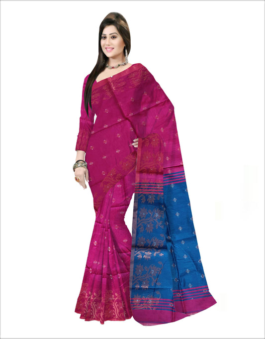 Pradip Fabrics Woven Deep pink & Sky Blue color Pure Soft Handloom Saree