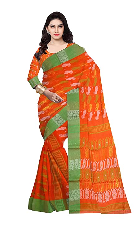 Pradip Fabrics Woven Tant Cotton All Over Dhakai Jamdani Orange Saree