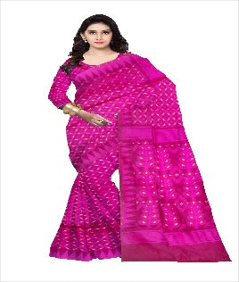 Pradip Fabrics Ethnic Women's Tant All Over Pink Dhakai Jamdani Minakari Saree