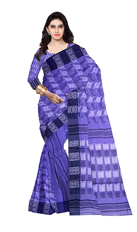 Pradip Fabrics Ethnic Women's All over Tant Jamdani Light Green and Blue Color Saree