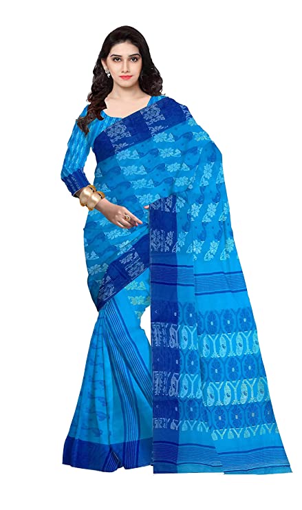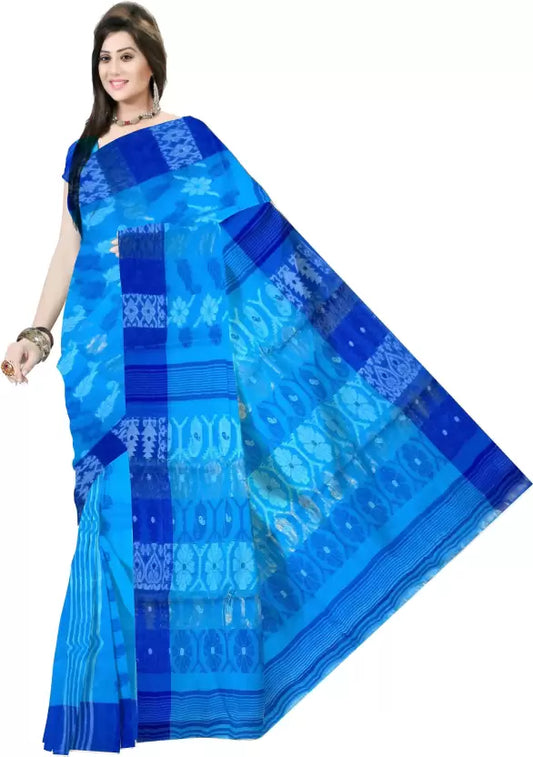 Pradip Fabrics Woven Tant Cotton All Over Dhakai Jamdani Blue Saree