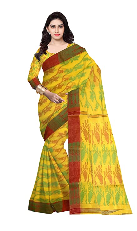 Pradip Fabrics Woven Tant Cotton All Over Dhakai Jamdani Yellow Saree