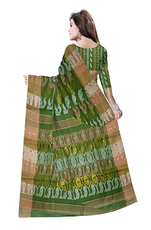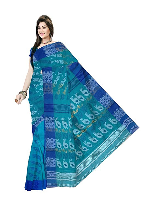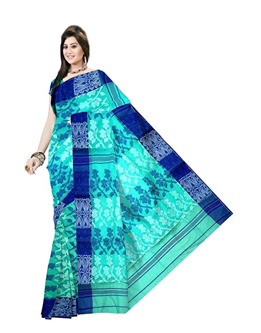 Pradip Fabrics Woven Tant Cotton All Over Dhakai Jamdani Teal color Saree