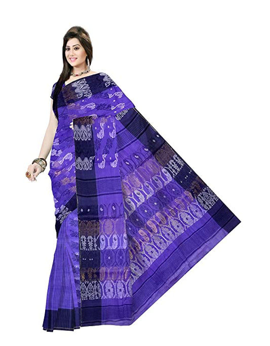 Pradip Fabrics Woven Tant Cotton All Over Dhakai Jamdani Dark Blue Saree