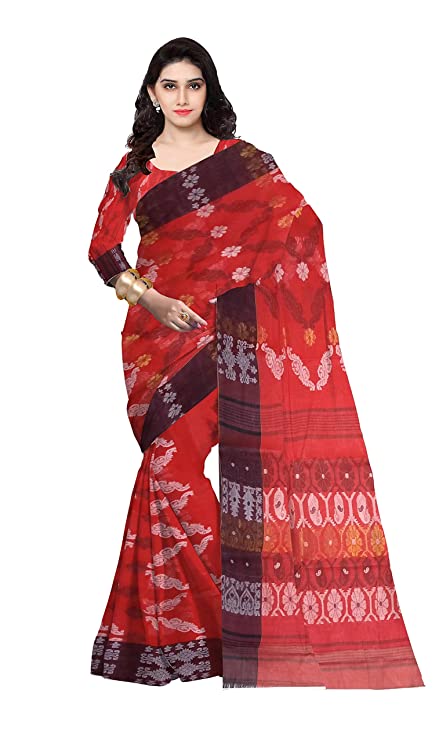Pradip Fabrics Woven Tant Cotton All Over Dhakai Jamdani Red Saree