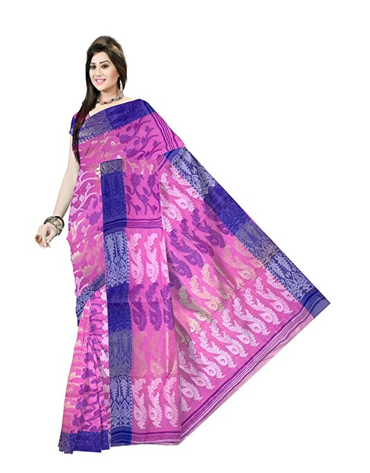 Pradip Fabrics Woven Tant Cotton All Over Dhakai Jamdani Pink Saree