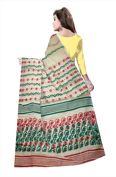Pradip Fabrics Ethnic Women's Tant jamdani Cream Color Saree