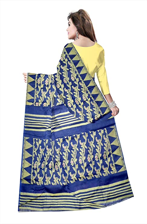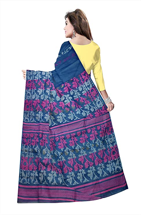 Pradip Fabrics Ethnic Women's Cotton Tant jamdani Dark Blue Color Saree