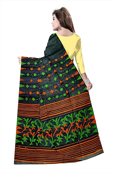 Pradip Fabrics Ethnic Women's Tant jamdani Black Color Saree