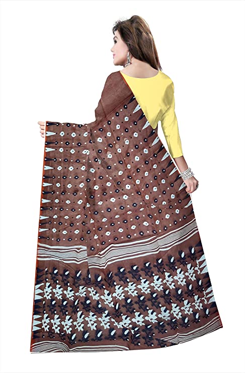 Pradip Fabrics Ethnic Women's Cotton Tant jamdani Brown Color Saree