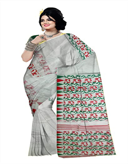 Pradip Fabrics Ethnic Women's Cotton Tant jamdani Ash Color Saree