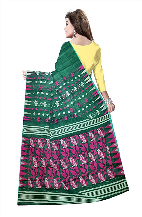 Pradip Fabrics Ethnic Women's Cotton Tant jamdani Green Color Saree