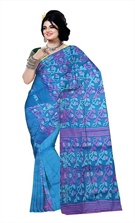 Pradip Fabrics Ethnic Women's Cotton Tant jamdani Blue Color Saree