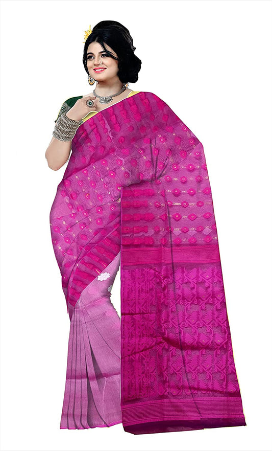 Pradip Fabrics Ethnic Women's Tant jamdani Magenta Color Saree