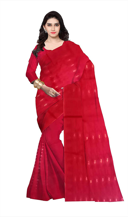 Pradip Fabrics Ethnic Women's Cotton Tant Gap Jamdani Red Color Saree