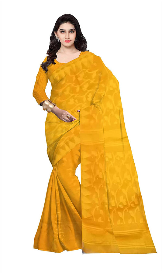 Pradip Fabrics Ethnic Women's Cotton Tant Gap Jamdani Yellow Color Saree