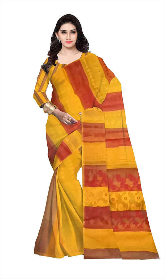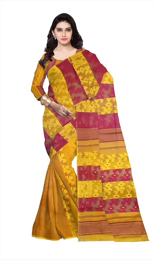 Pradip Fabrics Ethnic Women's Tant Jamdani Golden Color Saree