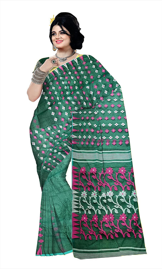Pradip Fabrics Ethnic Women's Jamdani Dark Green Color Saree
