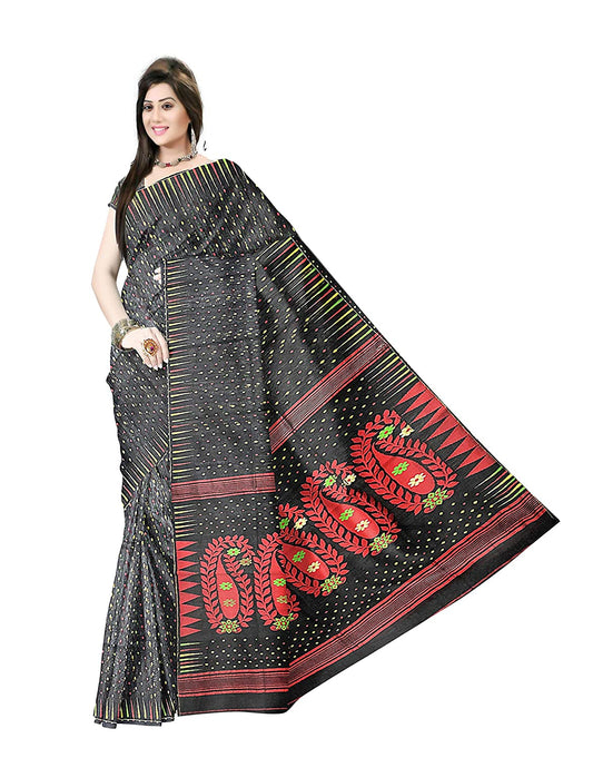 Pradip Fabrics Ethnic Women's Tant Silk Black Color Jamdani Saree