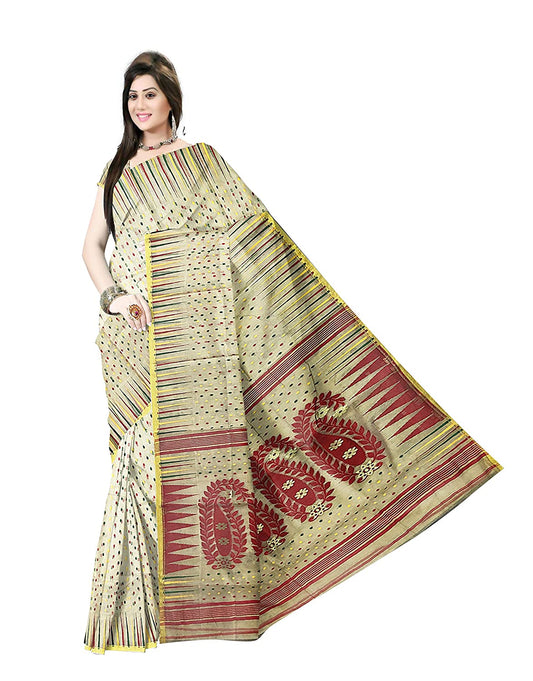 Pradip Fabrics Ethnic Women's Tant Silk Off White Color Jamdani Saree