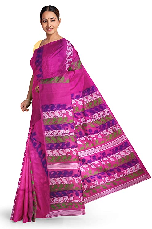 Pradip Fabrics Ethnic Women's Tant Jamdani Dark Pink Color Saree