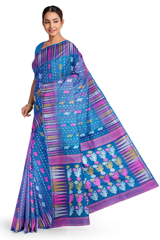 Pradip Fabrics Ethnic Woman's Tant Jamdani Blue Color Saree