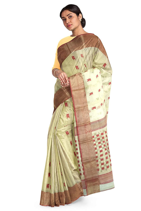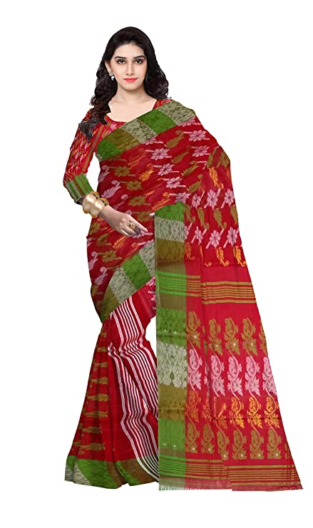 Pradip Fabrics Ethnic Women's Tant Jamdani Green Color Saree