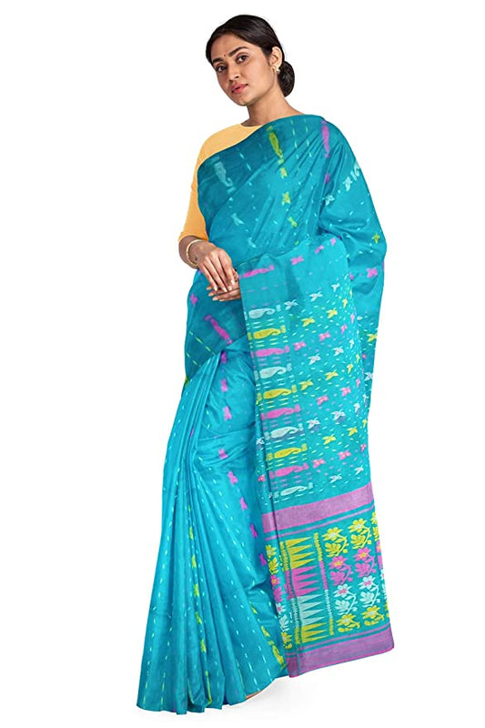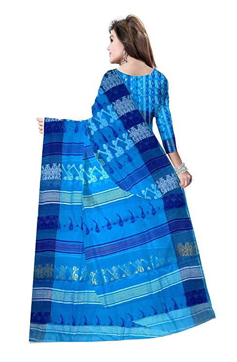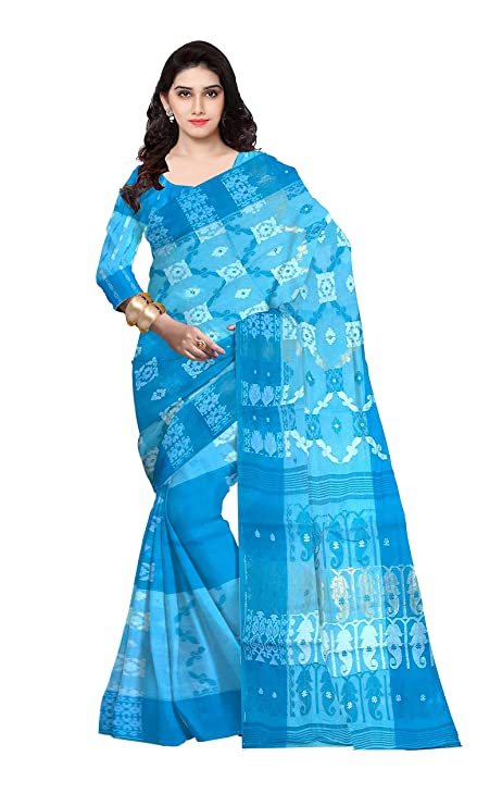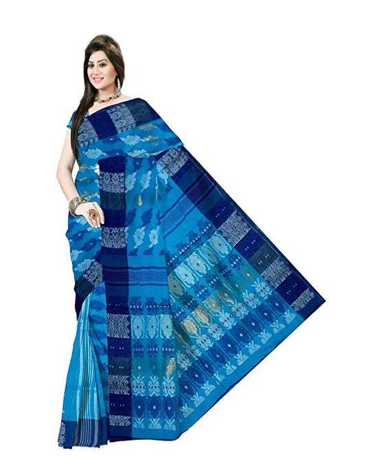 Pradip Fabrics Ethnic Women's Tant Jamdani Blue Color Saree