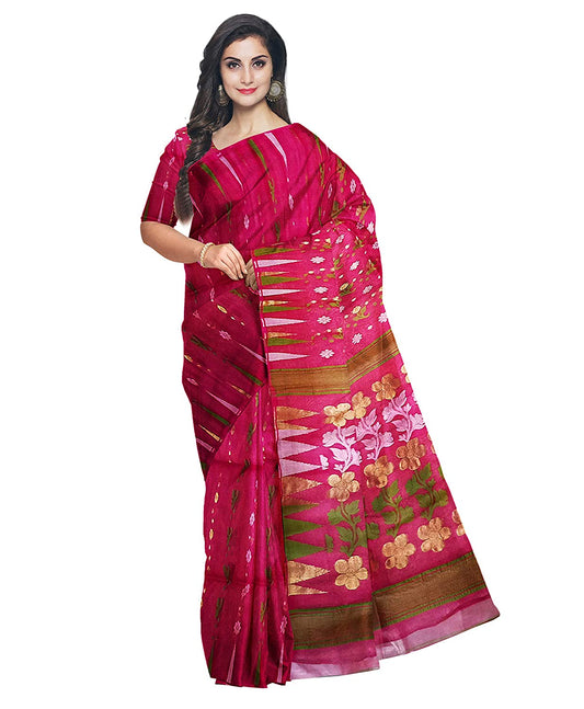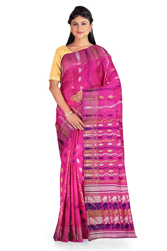 Pradip Fabrics Ethnic Women's Tant Jamdani Pink Color Saree