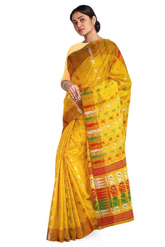 Pradip Fabrics Ethnic Women's Tant Jamdani Yellow Color Saree