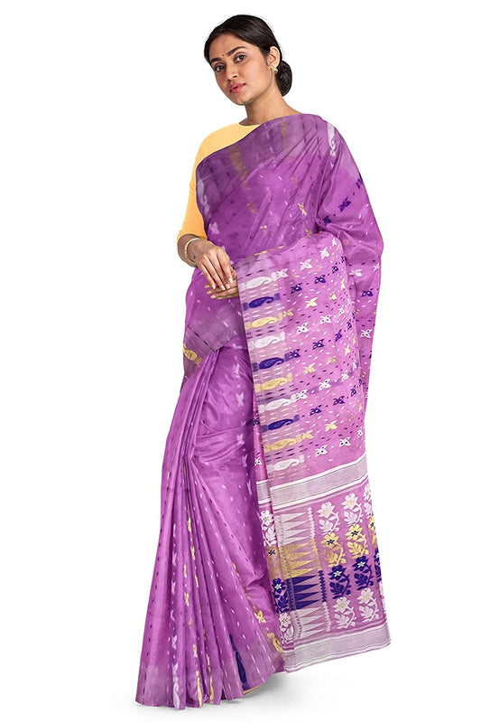 Pradip Fabrics Ethnic Women's Tant Jamdani Purple Color Saree