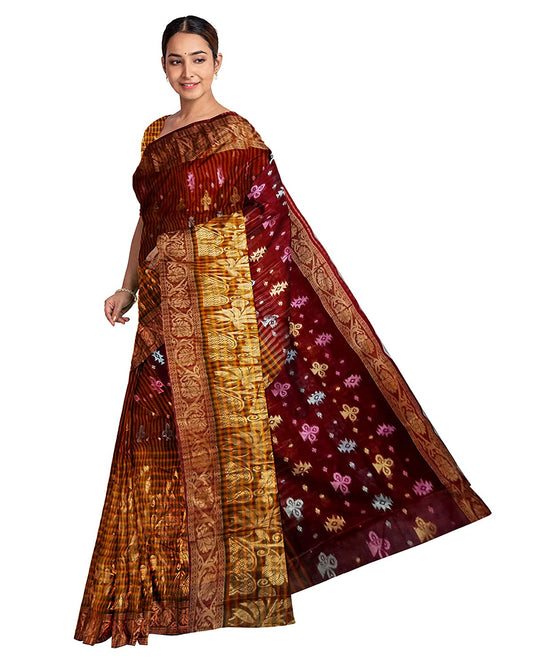 Pradip Fabrics Ethnic Women's Tant Jamdani Maroon Color Saree