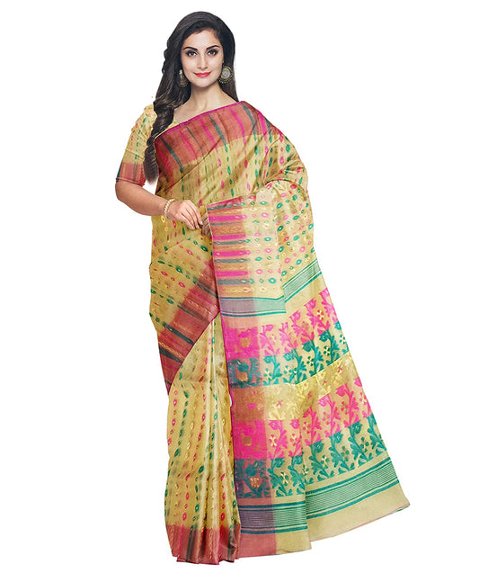 Pradip Fabrics Ethnic Women's Tant Jamdani Beige Color Saree