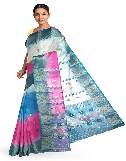 Pradip Fabrics Ethnic Women's Tant Silk White Color Saree