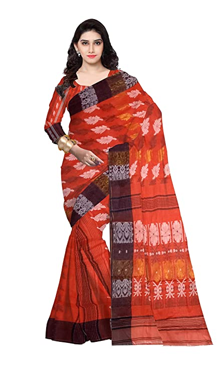 Pradip Fabrics Ethnic Women's Tant Jamdani Dark Orange Color Saree