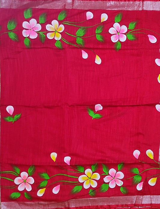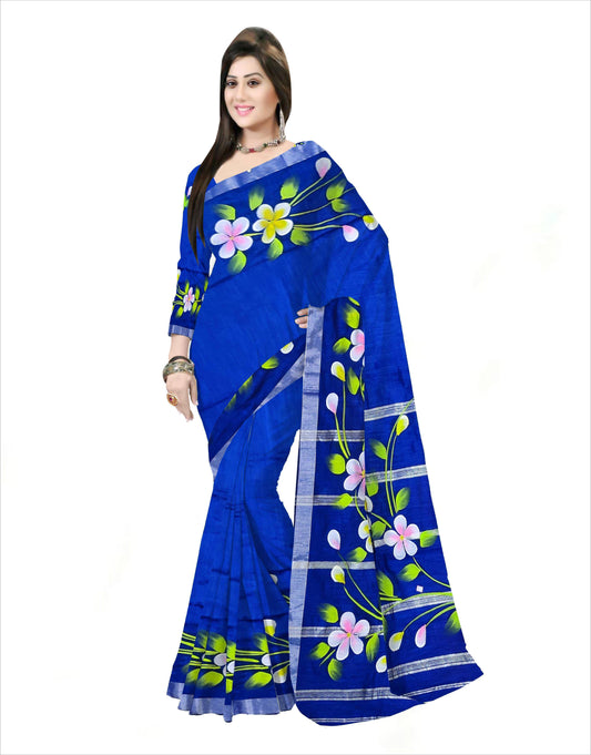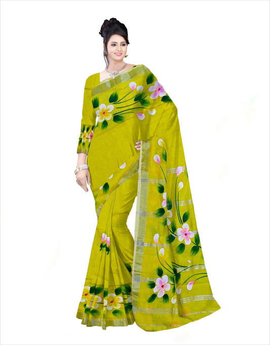 Pradip Fabrics Hand Painted Soft Linen Cotton Saree With Tassels