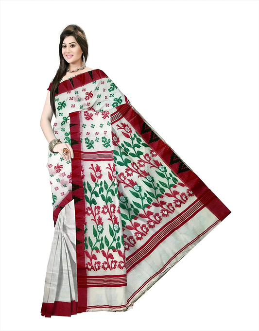 Pradip Fabrics Ethnic Women's Tant Silk Red and cream Color Baluchuri Saree