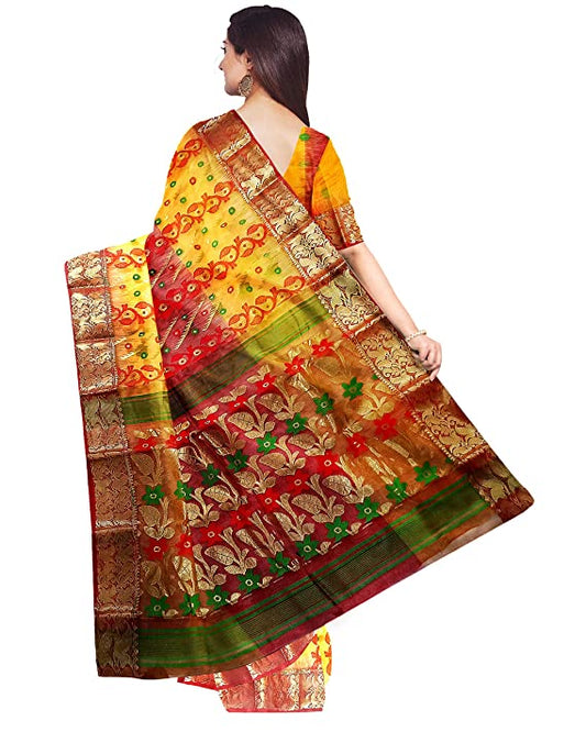 Pradip Fabrics Ethnic Women's Tant Silk Yellow and Red Color Baluchuri Saree