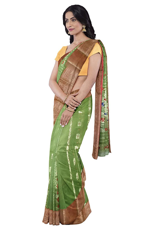Pradip Fabrics Green color Tant cotton Silk Blend Saree