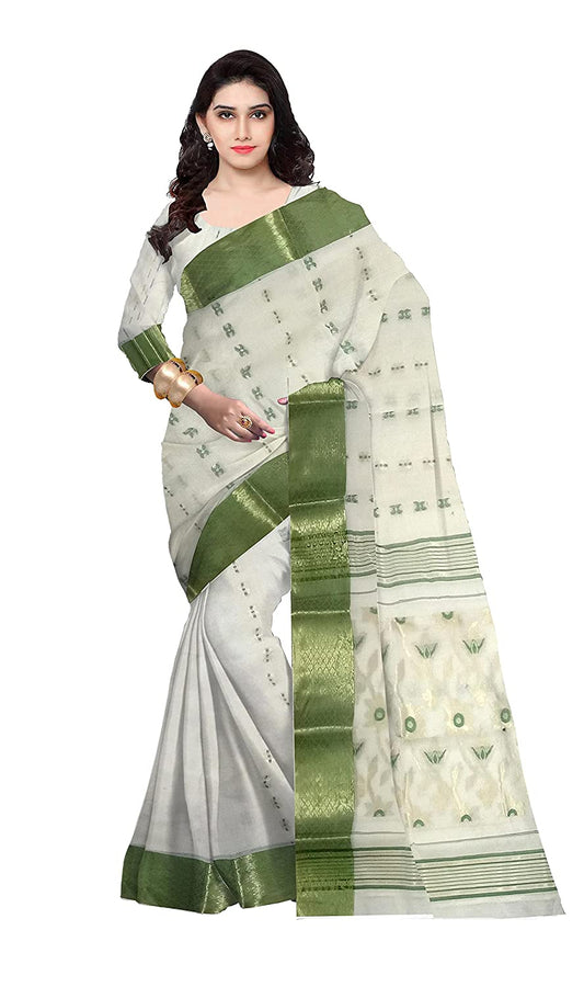 Pradip Fabrics Ethnic Women's Tant Cotton White color Saree
