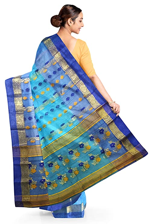 Pradip Fabrics Ethnic Women's Tant Silk Aqua Color Baluchuri Saree