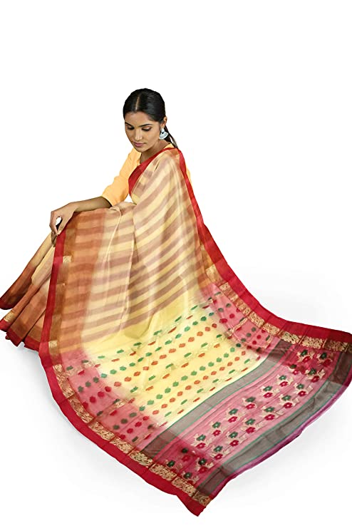 Pradip Fabrics Ethnic Women's Tant Silk Yellow Color Baluchuri Saree
